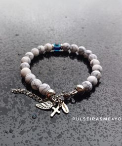 Pulseira Pedras Branco Howlita & Olho Turco – PULSH 315
