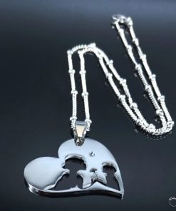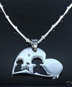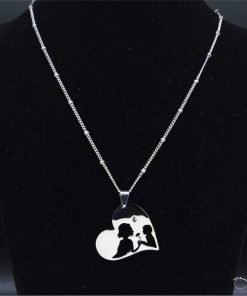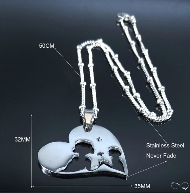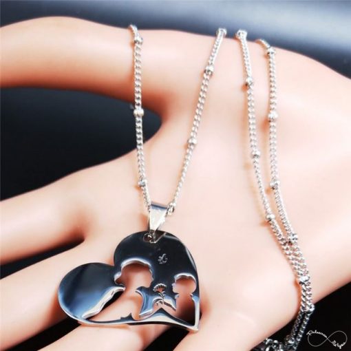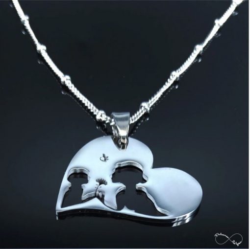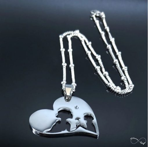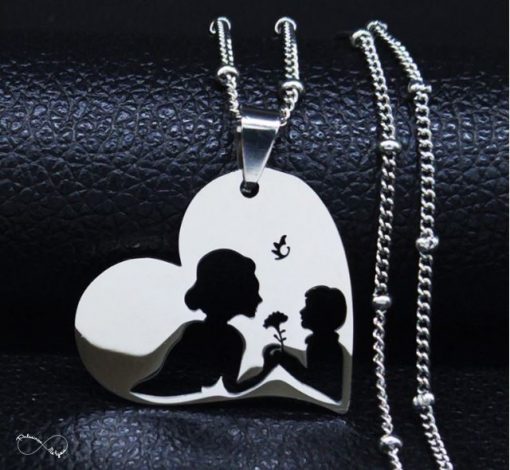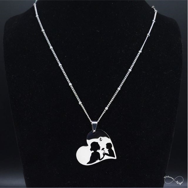 Colar em forma de Coração com Mãe e Menino/ Recortado Cor de Prata