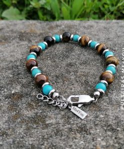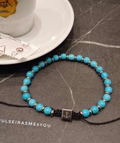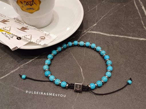 Pulseira Pedras 6mm Azul Turquesa e contas em Aço Inoxidável